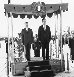 The Middle East was decolonized during the Cold War, and many nationalist movements gained strength post-independence. These nationalist movements supported non-alignment, keeping most Middle Eastern dictatorships out of the American and Soviet spheres of influence. These movements supported pan-Arab Nasserism during most of the Cold War, but they were largely replaced by Islamic nationalism by the 1980s.[102] Several Middle Eastern countries were the subject of military coups in the 1950s and 1960s, including Iraq, Syria, North Yemen, and South Yemen.[103] A 1953 coup overseen by the American and British governments restored Mohammad Reza Pahlavi as the absolute monarch of Iran, who in turn was overthrown during the Iranian Revolution of 1979 that established Ruhollah Khomeini as the Supreme Leader of Iran under an Islamist government.[102]