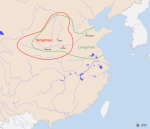 | 1 | Chéngzǐyá | 城子崖 | 2500–256 BC | 20 ha | 10,000 | [ ⚑ ] 36°44′09″N 117°21′15″E / 36.7358°N 117.35415°E | PreDynastic (Longshan) | none |