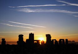 The reconstructed Cahokia Woodhenge, a large timber circle located at the Mississippian culture Cahokia archaeological site near Collinsville, Illinois,[18] is the site of annual equinox and solstice sunrise observances. Out of respect for Native American beliefs these events do not feature ceremonies or rituals of any kind.[19][20][21]