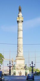 The Freedom Quarter (French: Quartier des Libertés, Dutch: Vrijheidswijk) is situated between the Belgian Parliament and the Rue Royale/Koningsstraat, not far from the crossroads with the Small Ring. Its focal point is the Congress Column (erected in memory of the National Congress of 1830–31, the founder of democratic liberties in Belgium), under which also lies the tomb of the Unknown Soldier with an eternal flame.[72] Not far from there is the Hotel Astoria, dating from 1911, which is currently being renovated and enlarged, to be reopened in the coming years.[73] In the 19th century, the district was known as Notre-Dame-aux-Neiges/Onze-Lieve-Vrouw-ter-Sneeuw and was predominantly inhabited by working-class people. The authorities' desire to clean up the squalid parts of the city led to the expulsion of the population and the neighbourhood's complete destruction. A new bourgeois district was developed during the last quarter of the century. The choice was made to commemorate Belgian independence: the Place de la Liberté/Vrijheidsplein ("Liberty Square"),[74] the Place des Barricades/Barricadenplein ("Barricades' Square"),[75] the Rue de la Révolution/Revolutiestraat ("Revolution Street"),[76] the Rue du Congrès/Congresstraat ("Congress Street"), etc.[77] The four streets leading off the Place de la Liberté bear the names of the four constitutional liberties, symbolised by four allegorical bronze female sculptures surrounding the Congress Column: Freedom of the Press, Worship, Association and Education.[72] This eclectic urban complex is one of the best preserved in the Pentagon.