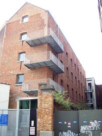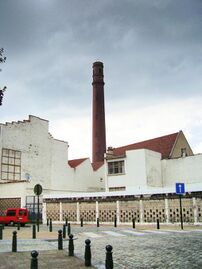 The damp and marshy land around the present-day Rue de la Senne/Zennestraat and Rue des Fabriques/Fabriekstraat was occupied by craftsmen since the Middle Ages.[44][45] An arm of the river crossed the defences of the second walls at the level of the Ninove Gate via the Petite Écluse/Kleine Sluis ("Small Lock"), which served as a maritime gate, an end of which remaining there until the 1960s. Later, small industries and many artisan breweries (now disappeared) established themselves in the area, as evidenced by the names of the Rue du Houblon/Hopstraat ("Hops Street")[46] and the Rue du Vieux Marché aux Grains/Oude Graanmarktstraat ("Old Grain Market Street").[47] The Shot Tower (Tour à Plomb), which was used to manufacture lead shot for hunting,[48] and the Rue de la Poudrière/Kruitmolenstraat ("Gunpowder Street"),[49] also testify to the neighbourhood's former activities. Long neglected following the relocation of businesses outside the city centre, the Senne/Zenne Quarter (French: Quartier de la Senne, Dutch: Zennewijk) has in recent years been the object of renewed interest and is undergoing gentrification due to the many disused industrial premises being converted into lofts. The area around the Rue Antoine Dansaert/Antoine Dansaertstraat has become a trendy district and is attracting a younger, more well-off, and mostly Dutch-speaking population.[50] This new situation, which has resulted in rising rents, is not without problems for the neighbourhood's less fortunate inhabitants.