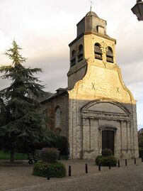 In the shadow of the gigantic Palace of Justice lies the Marolles/Marollen Quarter (French: Quartier des Marolles, Dutch: Marollenwijk, not to be confused with the Marolle that purists delimit to only seven streets).[29] From the Place de la Chapelle/Kapellemarkt[30] to the Place du Jeu de Balle/Vossenplein, where a daily flea market known as the Old Market has been held since 1873,[31] along the Rue Haute/Hogestraat and the Rue Blaes/Blaestraat, second-hand and popular shops have for some years given way to antique dealers, marking a profound transformation of the district.[32][33] The Cité Hellemans, a remarkable example of an early 20th-century collective housing complex, was built to replace the neighbourhood's many squalid cul-de-sacs.[34] The Rue Haute, one of the city's longest and oldest streets, follows the course of an old Gallo-Roman road,[32] and runs along Saint Peter's Hospital, built in 1935 on the site of a leprosium,[35] to end at the Halle Gate, the only remaining gate in a series that allowed passage inside the second walls of Brussels.[36]