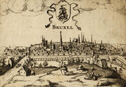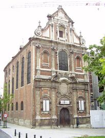 The Quays Quarter (French: Quartier des Quais, Dutch: Kaaienwijk) is that of the old Port of Brussels, which for a long time played the role of "belly" of the city. Boats coming from the river Scheldt penetrated through the former Shore Gate (French: Porte du Rivage, Dutch: Oeverpoort), on the site of the present-day Place de l'Yser/Ijzerplein, to join one of the canals, whose docks were each reserved for one type of goods.[51] Filled in the late 19th century with the opening of Brussels' new port, these basins were replaced by wide boulevards, whose names on both sides still recall their former function: the Quai aux Briques/Baksteenkaai ("Brick Wharf"),[52] the Quai au Bois à Brûler/Brandhoutkaai ("Firewood Wharf"),[53] the Quai aux Pierres de Taille/Arduinkaai ("Quarry Stone Wharf"),[54] the Quai au Foin/Hooikaai ("Hay Wharf"),[55] etc., or references to the neighbourhood's commercial activities: the Rue du Magasin/Pakhuisstraat ("Warehouse Street"),[56] the Rue des Commerçants/Koopliedenstraat ("Traders Street"),[57] the Rue du Marché aux Porcs/Varkensmarktstraat ("Pig Market Street")[58] and the Quai du Commerce/Handelskaai ("Trade Wharf").[59] Along the quaysides, numerous bourgeois houses, once belonging to wealthy merchants, have preserved the entrances to the warehouses. On the Boulevard d'Ypres/Ieperlaan, one can still cross food wholesalers, now supplied by trucks that have replaced the boats.[60] The district also includes the Great Beguinage of Brussels, with the Church of St. John the Baptist[61] and the remarkable Grand Hospice Pachéco.[62]