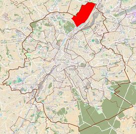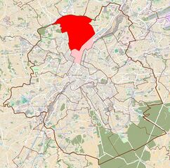 Unlike most of the municipalities in Belgium, the ones located in the Brussels-Capital Region were not merged with others during mergers occurring in 1964, 1970, and 1975.[5] However, a few neighbouring municipalities have been merged into the City of Brussels, including Haren, Laeken and Neder-Over-Heembeek in 1921.[6] These comprise the northern bulge in the municipality. To the south-east is also a strip of land along the Avenue Louise that was annexed from Ixelles.
