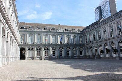 The Royal Quarter (French: Quartier Royal, Dutch: Koninklijke Wijk or Koningswijk) is so named because it houses, on the one hand, the Place Royale/Koningsplein ("Royal Square" or "King's Square"), built under Charles-Alexander of Lorraine on the Coudenberg hill, on the site of the former Palace of the Dukes of Brabant, of which certain levels of foundation still exist,[13] and on the other hand, the Royal Palace of Brussels,[14] which faces Brussels Park,[15][16] on the other side of which is the Belgian House of Parliament (Palace of the Nation).[17] Below the Royal District is the Central Station and the Mont des Arts/Kunstberg,[18] home to the Royal Library of Belgium (KBR),[19] the Royal Belgian Film Archive (Cinematek), the Brussels Centre for Fine Arts,[20] the Museum of Cinema, the Musical Instruments Museum (MIM),[21] the BELvue Museum, and the Royal Museums of Fine Arts of Belgium.[22]