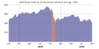 After the Wall Street Crash of 1929, where the Dow Jones Industrial Average dropped from 381 to 198 over the course of two months, optimism persisted for some time. The stock market rose in early 1930, with the Dow returning to 294 (pre-depression levels) in April 1930, before steadily declining for years, to a low of 41 in 1932.[10]