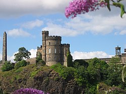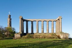The National Monument of Scotland (right) and Nelson Monument (left)
