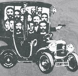 In 1840, Pierre Joseph Proudhon, a French anarchist, wrote What Is Property?, a question to which he famously answered "property is theft". By this, Proudhon meant that legitimate private property could result only from an individual's labor and all other capital was, in effect, stolen.[1] This economic world view converged in the minds of radicals with the Russian theorist Mikhail Bakunin's concept of propaganda of the deed, the use of physical violence against political enemies as a method of inspiring the masses.