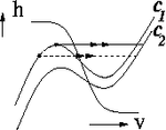 A key mechanism affecting synchronization when synaptic coupling turns on quickly is fast threshold modulation (FTM) (Somers and Kopell, 1993). In relaxation oscillations, the transition of a cell between its silent and active phases occurs when the cell reaches a saddle-node bifurcation (or knee) in a manifold of equilibrium points of its fast subsystem, under the flow of its slow subsystem. Suppose that when synaptic coupling is introduced, system (1) becomes \[ \begin{array}{rcl} \dot{V} & = & f(V,h)+c(V_{pre},V), \\ \dot{h} & = & \epsilon g(V,h), \end{array} \] where \( c(V_{pre},V) \) represents a coupling function of the second or third type described above. If the value of \( c(V_{pre},V) \) changes abruptly, then the manifold of equilibrium points where \( \dot{V}=0 \) may also jump abruptly in phase space. In particular, the knee that forms the threshold for transitions between phases moves rapidly, hence FTM occurs. In FTM, for example, a cell that is below a knee for \( c(V_{pre_1},V)=c_1 \) may lie above the corresponding knee for \( c(V_{pre_2},V)=c_2, \) such that if the coupling term quickly changes from c1 to c2, the cell quickly