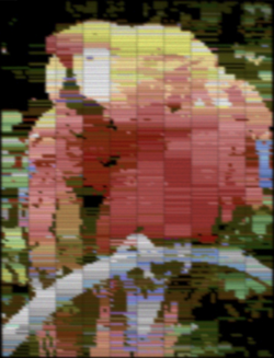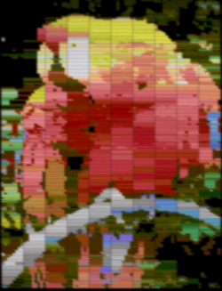 In addition to this, it had 3 color emphasis bits which can be used to dim the entire palette by any combination of red, green and blue. This extends the total available colors to 448, but inconveniently divided into 8 variations of the base 56. Because it affects the whole palette at once it may be considered more of a filter effect applied to the image, rather than an increased palette range.