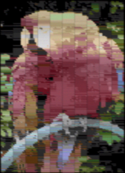 The above image assumes there is no limit on the number of colors per scan line. With the system's actual color restrictions (and proper change in aspect ratio), the same image would look very different:
