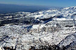 Mount Lebanon (Arabic: جَبَل لُبْنَان, jabal lubnān, apc; Syriac: ܛܘܪ ܠܒ݂ܢܢ, ṭūr leḇnān, syr, ṭūr lewnōn) is a mountain range in Lebanon. It averages above 2,500 m (8,200 ft) in elevation, with its peak at 3,088 m (10,131 ft). The range provides a typical alpine climate year-round.[1]