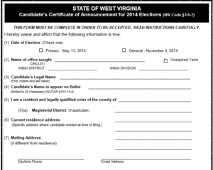 4. 4.0 4.1 4.2 4.3 4.4 4.5 West Virginia Secretary of State, "Running for Office in West Virginia," accessed December 10, 2013