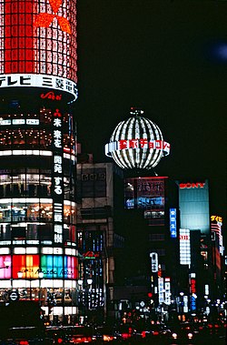 The nightlife district of Tokyo is centered around areas in the west of the city, such as Shibuya, Shinjuku, and Roppongi, with a high concentration of bars, clubs, host and hostess clubs, and live music venues.[216] Tokyo is also known for its festivals, such as the Sannō Matsuri at Hie Shrine, the Sanja Festival at Asakusa Shrine, and the biennial Kanda Matsuri, which features parades with elaborately decorated floats. Harajuku, located in Shibuya, is internationally famous for its youth fashion and street culture, with trendy shops, cafes, and Takeshita Street.[217] Akihabara, known as "Electric Town", is a hub for electronics and otaku culture such as anime and computer games, with numerous shops selling anime, manga, and gaming merchandise.[218] Ginza and Nihombashi are two of Tokyo's most notable shopping districts. Ginza is known for its high-end shopping, featuring luxury brand stores, boutique shops, and department stores such as Mitsukoshi and Wako. It is also home to numerous fine dining places and art galleries, making it a cultural and commercial hub. Nihombashi, historically a center of commerce, has long-established shops and the Mitsukoshi department flagship store, Japan's first department store, founded in 1673.[219] Jinbōchō is known for its concentration of bookstores, publishing houses, and literary cafes, and its links to a large number of famous literary figures.[220]