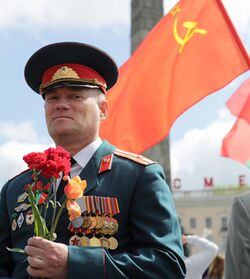 Soviet patriotism is the socialist patriotism involving emotional and cultural attachment of the Soviet people to the Soviet Union as their homeland.[1] It is also referred to as Soviet nationalism[2] due to the country's reliance on patriotic propaganda.[3][2][4][5][6]