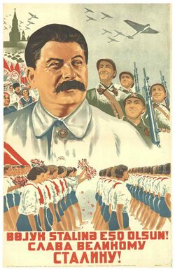 Stalin emphasized a centralist Soviet socialist patriotism that spoke of a collective "Soviet people" and identified Russians as being the "elder brothers of the Soviet people".[5] During World War II, Soviet socialist patriotism and Russian nationalism merged, portraying the war not just as a struggle of communists versus fascists, but more as a struggle for national survival.[5] During the war, the interests of the Soviet Union and the Russian nation were presented as the same, and as a result Stalin's government embraced Russia's historical heroes and symbols, and established a de facto alliance with the Russian Orthodox Church.[5] The war was described by the Soviet government as the Great Patriotic War.[5] After the war, nationalism was officially included into the ideology of the Soviet Union. Nationalities deemed "unreliable" were persecuted, and there were widespread deadly deportations during the Second World War.[7]