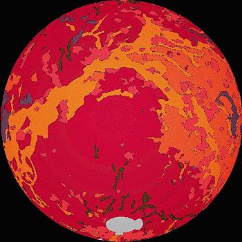 This lack of an intrinsic magnetic field at Venus was surprising given that it is similar to Earth in size, and was expected to also contain a dynamo in its core. A dynamo requires three things: a conducting liquid, rotation, and convection. The core is thought to be electrically conductive, however. Also, while its rotation is often thought to be too slow, simulations show that it is quite adequate to produce a dynamo.[14] [15] This implies that the dynamo is missing because of a lack of convection in Venus' core. On Earth, convection occurs in the liquid outer layer of the core because the bottom of the liquid layer is much hotter than the top. Since Venus has no plate tectonics to let off heat, it is possible that it has no solid inner core, or that its core is not currently cooling, so that the entire liquid part of the core is at approximately the same temperature. Another possibility is that its core has already completely solidified.