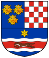 Unofficial, but more common design of the coat of arms without the St. Stephen's crown