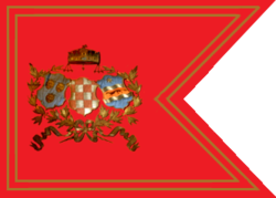 However, there existed several variations of the internally used version of the flag, with some variants using an unofficial type of crown or simply omitting the crown instead of using the officially prescribed Hungarian Crown of St. Stephen. There were also variations in the design of the shield. The unofficial coat of arms was the preferred design and its widespread use was the reason that the Ban issued a Decree on 21 November 1914, stating that it had become "a custom in the Kingdoms of Croatia and Slavonia to use flags that are not adequate either in state-juridical or in political sense" and which strengthened flag related laws. It reiterated the aforementioned definitions of Croatian flags from 1867 and further stated that "Police authorities shall punish violations of this Decree with a fine of 2 to 200 K or with arrest from 6 hours to 14 days and confiscate the unauthorized flag or emblem."[47][50]