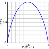 The special case of information entropy for a random variable with two outcomes is the binary entropy function, usually taken to the logarithmic base 2, thus having the shannon (Sh) as unit: