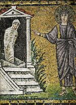 At the end of this period, the Gospel of John includes the Raising of Lazarus episode in John 11:1–46 in which Jesus brings Lazarus of Bethany back to life four days after his burial.[53] In the Gospel of John, the raising of Lazarus is the climax of the "seven signs" which gradually confirm the identity of Jesus as the Son of God and the expected Messiah.[124] It is also a pivotal episode which starts the chain of events that leads to the crowds seeking Jesus on his Triumphal entry into Jerusalem – leading to the decision of Caiaphas and the Sanhedrin to plan to kill Jesus.[125]