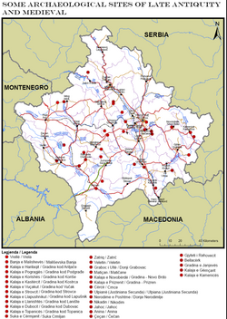 Konstantin Jireček concluded, from the correspondence of archbishop Demetrios of Ohrid (1216–36), that Prizren was the northeasternmost area of Albanian settlement prior to the Slavic expansion that began in the 6th century.[28] Other historians and linguists have concluded that the northernmost and easternmost expansion of the predecessors of the Albanians prior to Slavic expansion was rather Lipjan, Vushtrri, Shkup, Nish, Shtip in Dardania and Macedonia and included the area of Montenegro and the town of Ulqin.[29][30][31][32][33][34][35]
