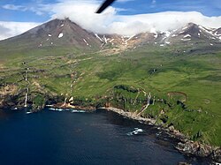 Tana is an eroded pair of east–west trending stratovolcanic cones east of the more known Cleveland volcano, and is located on the eastern end of the Chuginadak Island of the Islands of Four Mountains of the Aleutian Islands in Alaska.