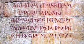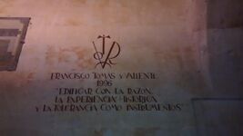 The victor symbol (Spanish: víctor or vítor) is an emblem that is painted on the walls of some Spain and Latin American universities to commemorate students who have received the degree of doctorate. The custom dates back to the 14th century, and the symbol has historically been used at older universities in the Spanish-speaking world, such as the University of Salamanca,[1] the University of Alcalá, and the University of Seville[2] in Spain, as well as the National University of San Marcos in Lima, Peru.[3] According to the custom, when a student receives the doctorate, the victor symbol is painted on the walls of the university in red or black paint along with the student's name.