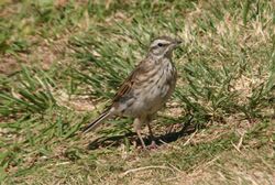As might be expected from a genus with such a wide distribution, the pipits are found in an equally wide range of habitats. They occur in most types of open habitat, although they are absent from the very driest deserts. They are mostly associated with some kind of grassland, from sea-level to alpine tundra. The rock pipit and South Georgia pipit are found in the rocks and cliffs of the seashore,[11][12] whereas several species are restricted (for part of the year in some cases) to alpine areas. The family also ranges from the northern tundra and the subantarctic islands of New Zealand and the South Georgia group to the tropics.[5] They are absent from tropical rainforest,[4] but a few species are associated with open woodland, for example the wood pipit of southern Africa, which is found in open woodland savanna and miombo woodland.[5]