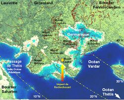 L' Ardenne, Bohemian terrane, Rochechouart impact structure ('Impact') and Tethys Ocean.
