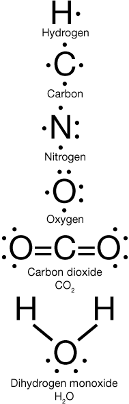 The idea of covalent bonding can be traced to Gilbert N. Lewis, who in 1916 described the sharing of electron pairs between atoms. He introduced the so called Lewis Notation or Electron Dot Notation in which valence electrons (those in the outer shell) are represented as dots around the atomic symbols. Pairs of electrons located between atoms represent covalent bonds. Multiple pairs represent multiple bonds, such as double and triple bonds. Some examples of Electron Dot Notation are shown in the figure to the right. In this diagram bond-forming electron pairs are represented as solid lines.