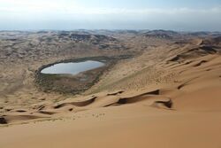If the coast has dune fields, then flooding creates many smaller pools between the crests of the dunes. In some parts of the world, these lakes can also form in inland deserts, filled by rain or a rising water table from underground aquifers.