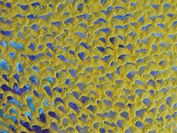 The climate variations lead to the very dynamic nature of a sabkha. Halite is deposited on the surface of the sabkha and gypsum and aragonite precipitate in the subsurface[14] via capillary action from brines brought up from the water table.[10] In drier parts of the sabkha the gypsum can be altered to anhydrite and the aragonite can be dolomitized diagenetically.[13] Thermal contraction at night and expansion during the day leads to concave polygonal pans as the edges have been upturned, in part due to growth of evaporites wedging the crack apart.[10] Below this is a gypsum mush where nodules of anhydrite and other sulfates may develop. These might also form a “chicken wire” crystalline structure. Below this are the intertidal deposits typified by laminated, organic-rich muds formed by the microbial mats that grade downward into more bioturbated muds. The subtidal facies show carbonate grainstones and lagoonal muds.