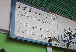 Ashraf Ali Thanwi, also known as Ḥakīm al-Ummat (1863 – 1943), played a central role in the Islamic religious, spiritual, and intellectual landscape of late 19th and 20th century South Asia, and his influence still resonates today.[1] While his primary focus was on religious and spiritual matters, he also expressed some political views. He believed that politics should be considered an integral part of religion and categorically dismissed both secularist and political interpretations of Islam.[2] In his view, the sole purpose of politics is to serve the greater objectives of religion, which entail establishing a connection between believers and God, and thus, religious norms must never be subordinated to political ends.[3] He remained skeptical of democracy, considering it a Western import that did not necessarily align with Islamic principles. He emphasized the significance of reinstating the Islamic concept of the caliphate, which functions as a system of Islamic governance based on the principles of Islam, but he did not devise any specific model for it.[4] He opposed the Khilafat Movement due to its non-compliance with Sharia and was against the Indian National Congress. Therefore, he resigned from the management committee of Darul Uloom Deoband due to its pro-Congress stance.[5] As a primary supporter of a separate homeland for Muslims, popularly known as the Pakistan Movement, he firmly backed the Muslim League and sought to transform it into an army of Allah through his guidance.[6] He was recognized when he was invited as a guest to the 30th Session of All-India Muslim League, held on 24-26 April 1943 in Delhi. After his death, his disciples established the Jamiat Ulema-e-Islam to support the creation of Pakistan , with Zafar Ahmad Usmani and Shabbir Ahmad Usmani being the key players in religious support for the movement.[1]