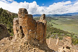 Yellowstone's geological history is fairly well-understood, especially since the major geological events that shaped it have happened relatively recently. Nevertheless, there are a few young-Earth creationists who believe that the park is evidence that the Earth is only 6,000 or so years old. For example, Answers in Genesis alleges that Yellowstone shows evidence of how large volcanoes changed the Earth's surface after the Global Flood.[18] Never mind that the most recent eruption happened 645,000 years ago, over one hundred times longer than they think the Earth was around, but they try to get around this by saying that since the ground is still hot, the volcano must have erupted 4,500 years ago — which is still ridiculous, considering that there are archaeological sites in Yellowstone that are much older than that and aren't covered in ash.[5] This also ignores the aforementioned fact that not enough of the caldera is molten for there to be a large-scale eruption, and also completely overlooks all the past calderas that were created by the hotspot.