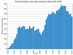 A Nielsen poll in 2012 found that only 27% of voters favoured decriminalisation.[78] Australia has steep penalties for growing and using drugs even for personal use.[79][80][81] with Western Australia having the toughest laws.[82] There is an associated anti-drug culture amongst a significant number of Australians. Law enforcement targets drugs, particularly in the party scene.[83] In 2012, crime statistics in Victoria revealed that police were increasingly arresting users rather than dealers,[84] and the Liberal government banned the sale of bongs that year.[85]