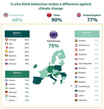 A growing number of Europeans and Chinese respondents to a climate survey believe that their behavior can make a difference in tackling climate change.[1]