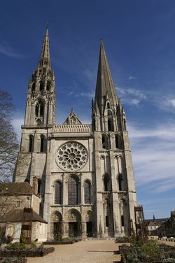 Chartres is a town in France and according to official figures from 2009 it has a municipal population of 39,000.[1] It sits on the River Eure some 80km south west of Paris.[2] There has been human activity in the area since the Neolithic. In the 2nd century B.C. the settlement was the capital of the Carnutes tribe [3] The Romans called the town Autricum, derived from their name for the River Eure (Autura) but it was also called Carnuntum after the Carnutes tribe. Christianity probably became the town's main religion sometime in the 4th century A.D. and became the seat of the Bishop of Chartres in the 5th century.[2] The present Cathedral at Chartres dates from the 12th and 13th centuries and is now a UNESCO World Heritage site.[4]