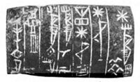 Seal impressions from the Jemdet Nasr period (c. 3100–2900 BCE) show a fixed sequence of symbols representing various cities, including those of Ur, Larsa, Zabalam, Urum, Arina, and probably Kesh.[30] This list probably reflects the report of contributions to Inanna at Uruk from cities supporting her cult.[30] A large number of similar seals have been discovered from phase I of the Early Dynastic period (c. 2900–2350 BCE) at Ur, in a slightly different order, combined with the rosette symbol of Inanna.[30] These seals were used to lock storerooms to preserve materials set aside for her cult.[30]