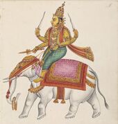 Painting of Indra on his elephant mount, Airavata, c. 1820.