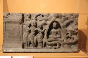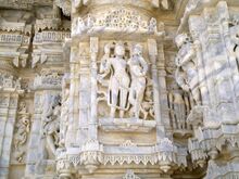 Indra is also depicted in Buddhist (Pali: Indā)[18][19] and Jain[20] mythologies. Indra rules over the much-sought Devas realm of rebirth within the Samsara doctrine of Buddhist traditions.[21] However, like the post-Vedic Hindu texts, Indra is also a subject of ridicule and reduced to a figurehead status in Buddhist texts,[22] shown as a god that suffers rebirth.[21] In Jain traditions, unlike Buddhism and Hinduism, Indra is not the king of gods, but the king of superhumans residing in Svarga-Loka, and very much a part of Jain rebirth cosmology.[23] He is also the one who appears with his wife Indrani to celebrate the auspicious moments in the life of a Jain Tirthankara, an iconography that suggests the king and queen of superhumans residing in Svarga reverentially marking the spiritual journey of a Jain.[24][25]