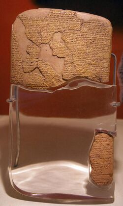The origins of international law can be traced back to antiquity.[12] Among the earliest recorded examples are peace treaties between the Mesopotamian city-states of Lagash and Umma (approximately 3100 BCE), and an agreement between the Egyptian pharaoh, Ramesses II, and the Hittite king, Ḫattušili III, concluded in 1279 BCE.[11] Interstate pacts and agreements were negotiated and agreed by polities across the world, from the eastern Mediterranean to East Asia.[13] In Ancient Greece , many early peace treaties were negotiated between its city-states and, occasionally, with neighbouring states.[14] The Roman Empire established an early conceptual framework for international law, jus gentium, which governed the status of foreigners living in Rome and relations between foreigners and Roman citizens.[15][16] Adopting the Greek concept of natural law, the Romans conceived of jus gentium as being universal.[17] However, in contrast to modern international law, the Roman law of nations applied to relations with and between foreign individuals rather than among political units such as states.[18]