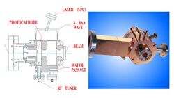 An RF electron gun[1] consists of a Microwave cavity, either single cell or multi-cell, and a cathode. In order to obtain a smaller beam emittance at a given beam current, a photocathode is used.[2] An RF electron gun with a photocathode is called a photoinjector.