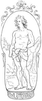 - Old Norse: Týr, associated with justice; the plural tívar survived as a poetic word for 'the gods', and týr appears in kennings for Odin and Thor, such as in the Odin's names Sigtýr ("victory-god"), Gautatýr ("god of the Geats"), Fimbultýr ("powerful god"), or Hertýr ("army-god"),