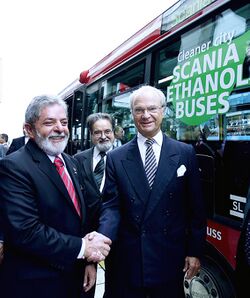 Based on the satisfactory results obtained during the 3-year trial operation of the two buses, in November 2010 the municipal government of São Paulo city signed an agreement with UNICA, Cosan, Scania and Viação Metropolitana", a local bus operator, to introduce a fleet of 50 ethanol-powered ED95 buses by May 2011. The city's government objective is to reduce the carbon footprint of the city's bus fleet which is made of 15,000 diesel-powered buses, and the final goal is for the entire bus fleet to use only renewable fuels by 2018.[13][14][15] The first ethanol-powered buses were delivered in May 2011, and the 50 ethanol-powered ED95 buses will begin regular service in June 2011.[11][16]