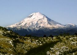 The Trans-Mexican Volcanic Belt (Spanish: Eje Volcánico Transversal), also known as the Transvolcanic Belt and locally as the Sierra Nevada (Snowy Mountain Range),[4] is an active volcanic belt that covers central-southern Mexico. Several of its highest peaks have snow all year long, and during clear weather, they are visible to a large percentage of those who live on the many high plateaus from which these volcanoes rise.