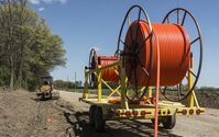 Fiber-optic communications cable being buried in protective duct, 2016.