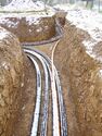 Subterranean cables being buried in a trench, 2021.