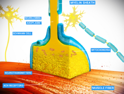 Myasthenia gravis is a neuromuscular disease leading to fluctuating muscle weakness and fatigability during simple activities. Weakness is typically caused by circulating antibodies that block acetylcholine receptors at the post-synaptic neuromuscular junction, inhibiting the stimulative effect of the neurotransmitter acetylcholine. Myasthenia is treated with immunosuppressants, cholinesterase inhibitors and, in selected cases, thymectomy.