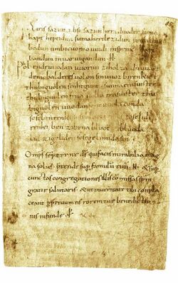 The Merseburg charms or Merseburg incantations (German: die Merseburger Zaubersprüche) are two medieval magic spells, charms or incantations, written in Old High German. They are the only known examples of Germanic pagan belief preserved in the language. They were discovered in 1841 by Georg Waitz,[1] who found them in a theological manuscript from Fulda, written in the 9th century,[2] although there remains some speculation about the date of the charms themselves. The manuscript (Cod. 136 f. 85a) is stored in the library of the cathedral chapter of Merseburg, hence the name.
